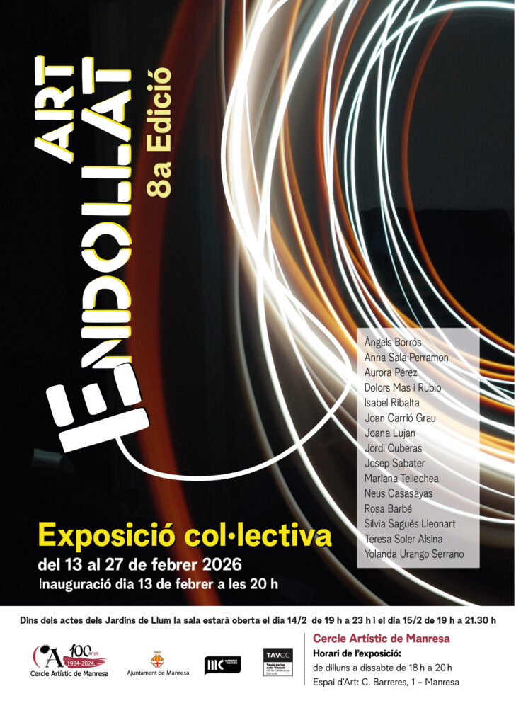 Exposició ‘Art Endollat’ Exposició col·lectiva del 13 al 27 de febrer de 2026. Inauguració el dia 13 de febrer a les 20 h, dins el certamen Jardins de Llum. Obert els dies 14 i 15 en els horaris dels Jardins de LLum.