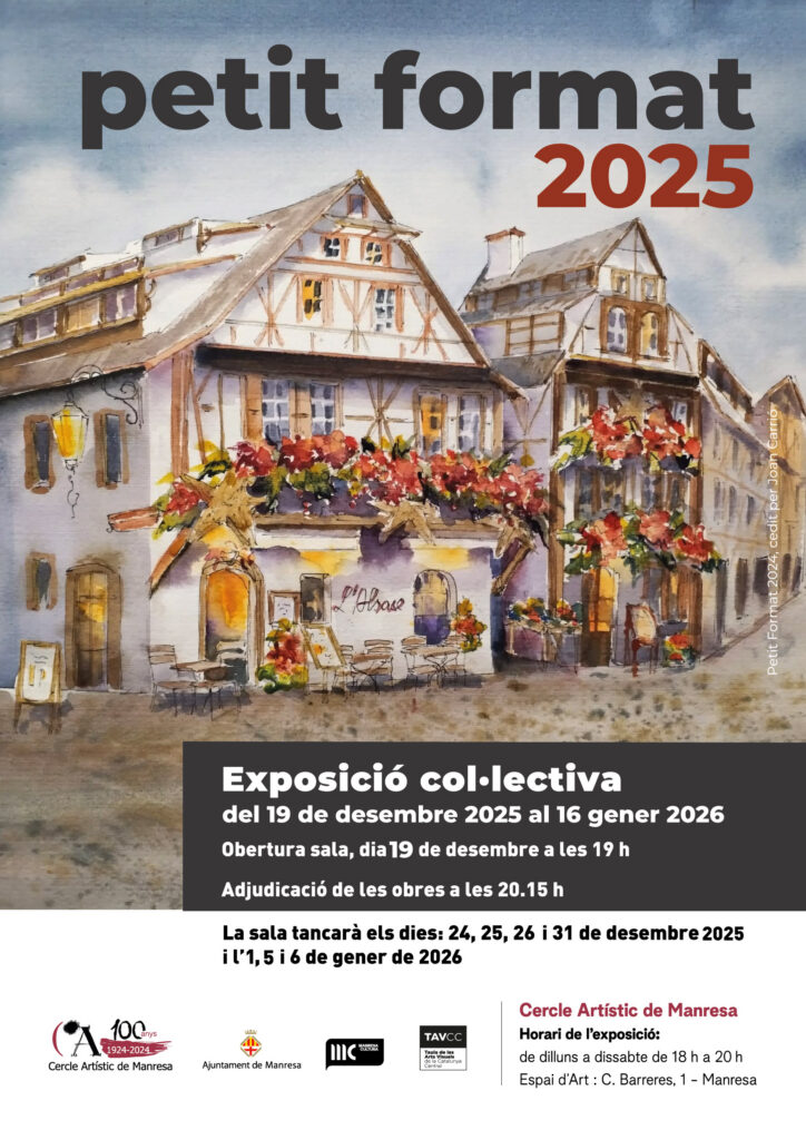 Exposició de Petit Format 2025 del 19 de desembre al 16 de gener de 2026. Inauguració el dia 19 de desembre a les 19 h, adjudicació de les obres a les 20.15 h